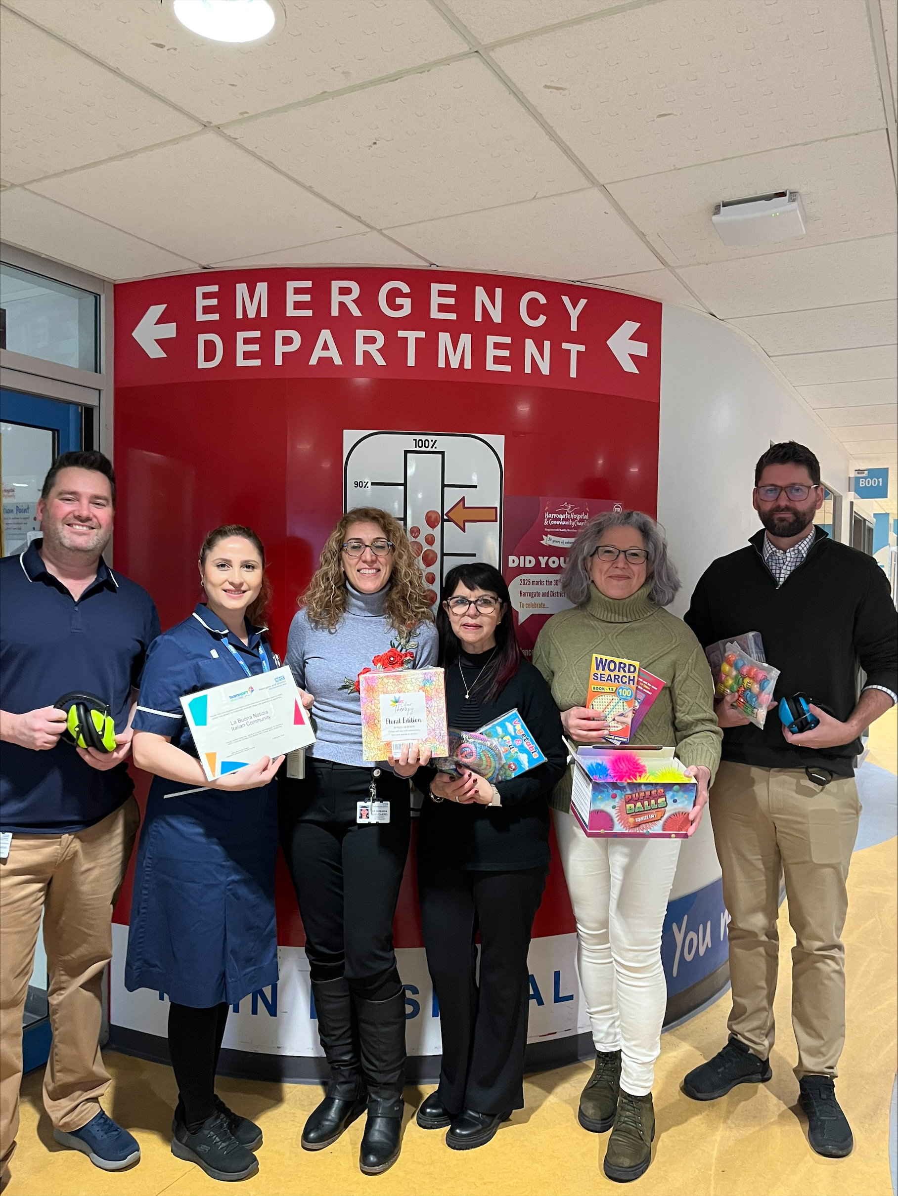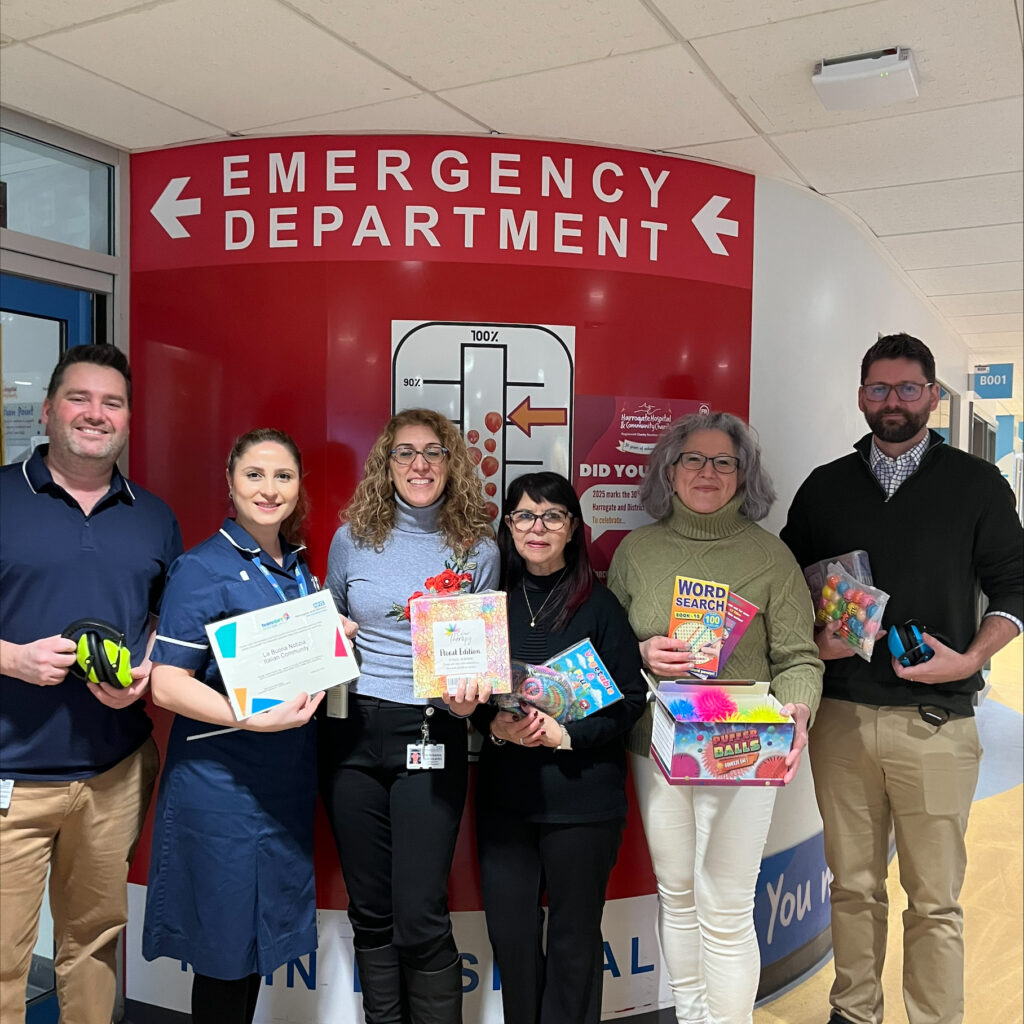 Harrogate District Hospital’s Emergency Department has received a donation of sensory kits valued at £1,200 from La Buona Notizia (“Good News”), an Italian Catholic community based at St. Joseph’s Church in Harrogate.