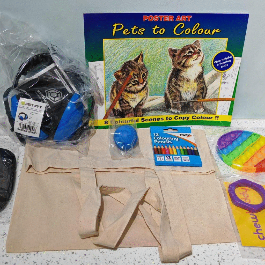 Each kit contains items such as fidget toys, noise cancelling headphones, face masks and activity books, all aimed at helping patients self-regulate, reduce distress, and feel more in control during periods of emotional or physical stress.